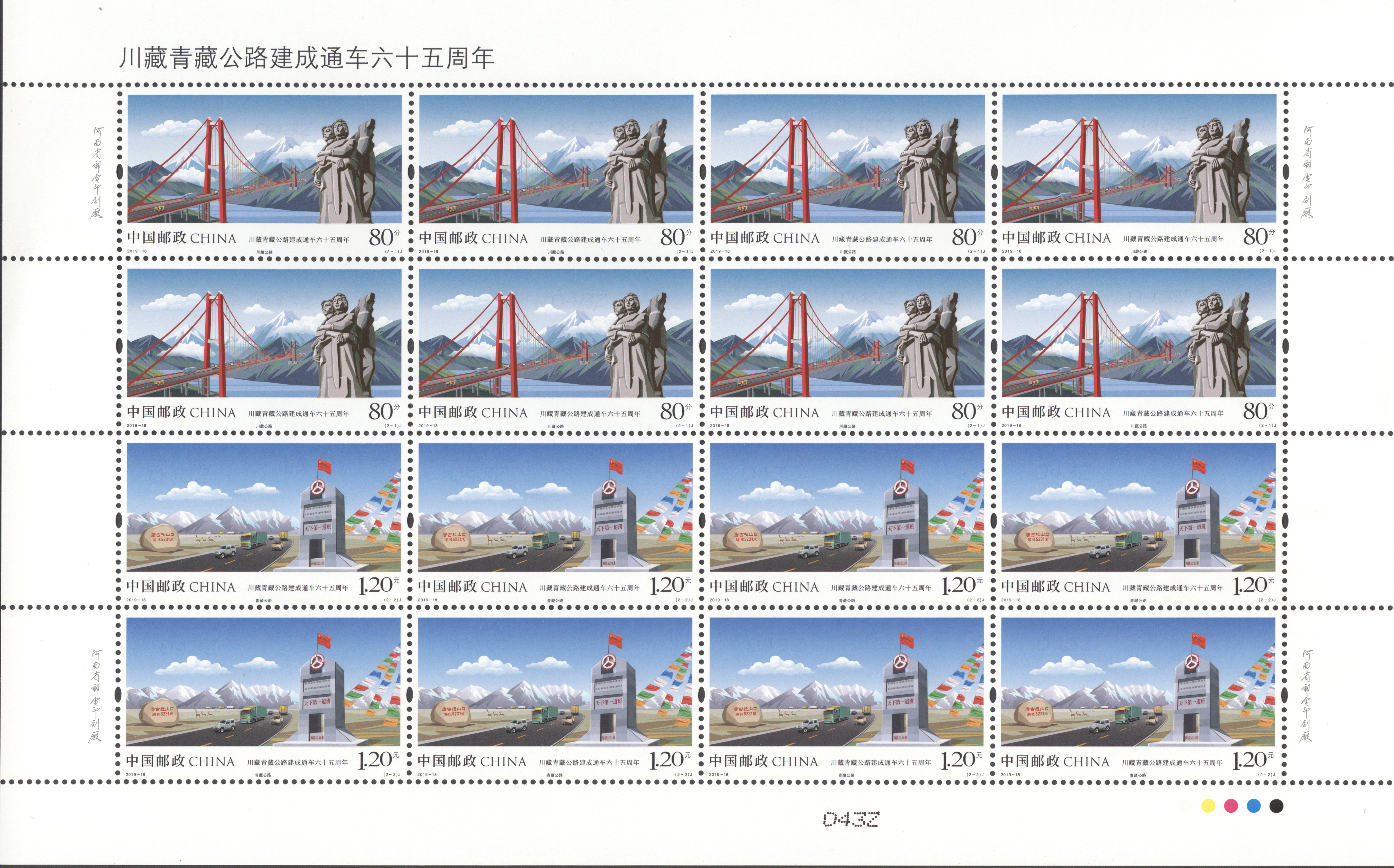 中国邮政定于2019年8月10日发行《川藏青藏公路建成通车六十五周年》纪念邮票1套2枚。详情如下: