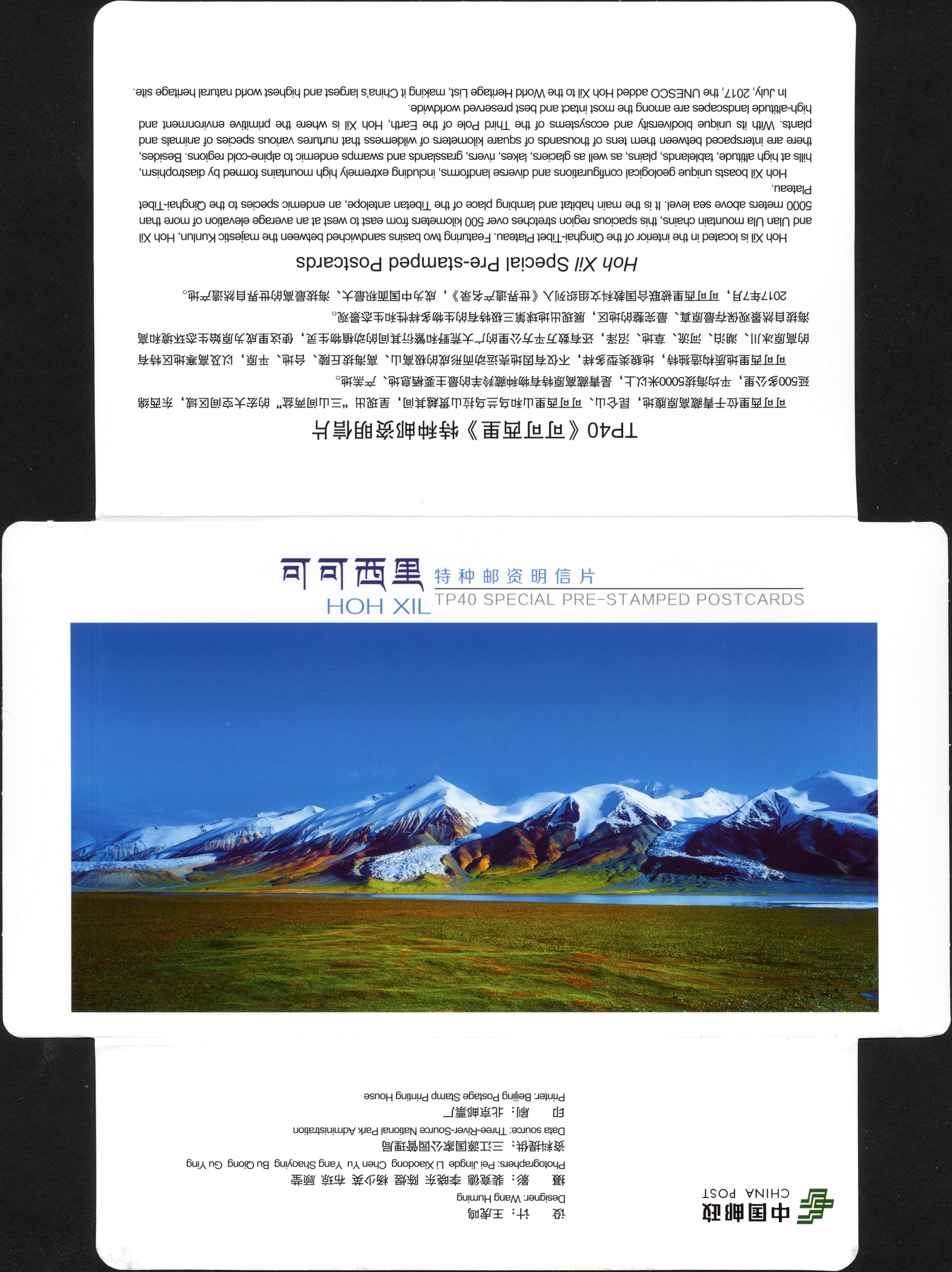中国邮政定于2019年8月20日发行《可可西里》特种邮资明信片1套6枚(封套式)。详情如下: