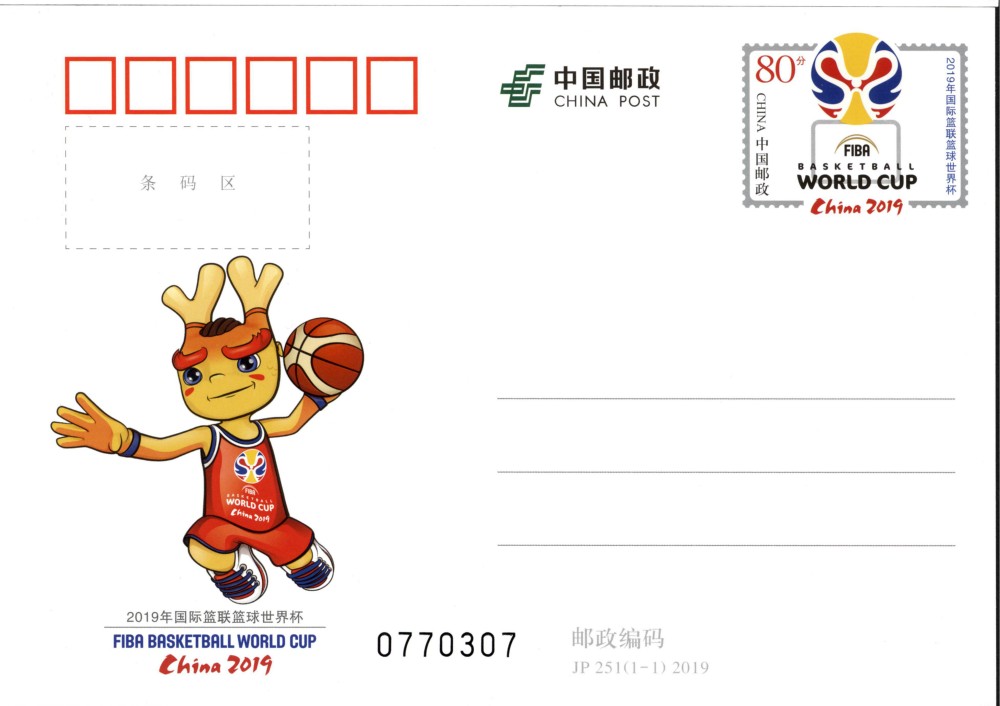 中国邮政定于2019年8月31日发行《2019年国际篮联篮球世界杯》纪念邮资明信片1套1枚。详情如下: