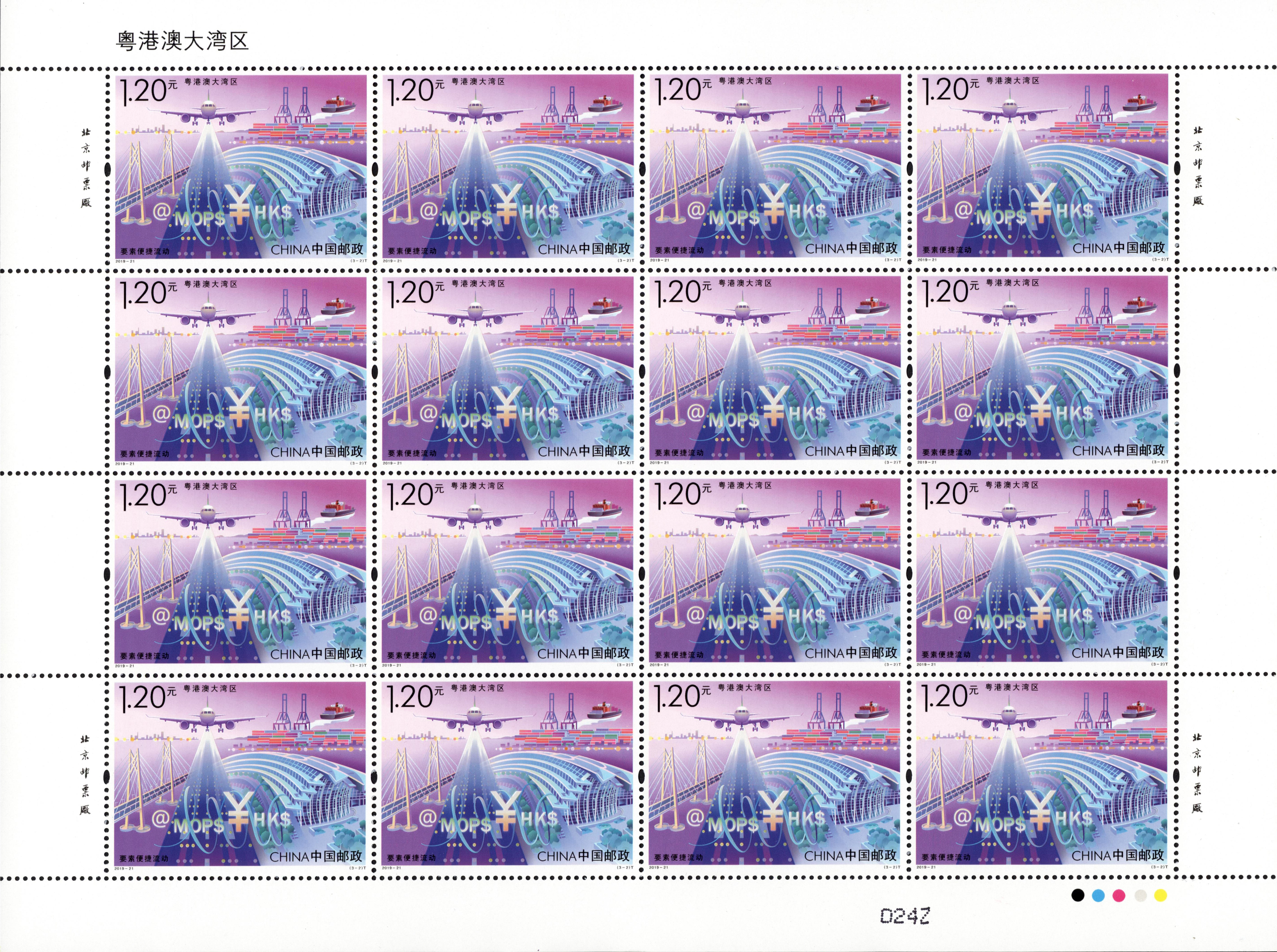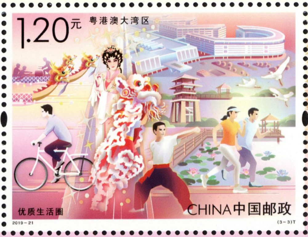 中国邮政定于2019年9月26日发行《粤港澳大湾区》特种邮票1套3枚,小全张1枚。详情如下: