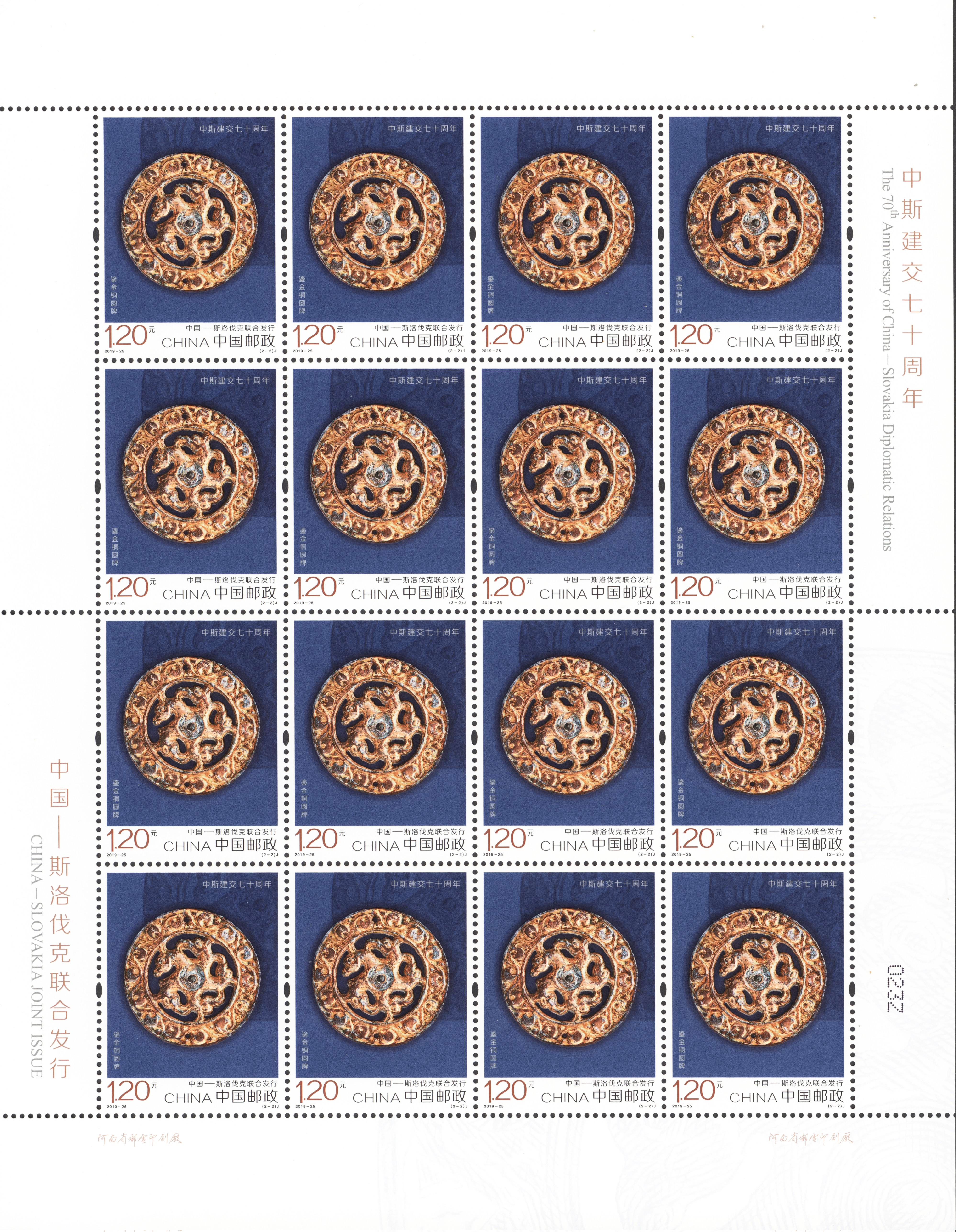 今年是中华人民共和国与斯洛伐克共和国建交70周年,为增进中斯两国人民之间的相互了解和友谊,两国邮政联合发行建交纪念邮票,这是继2002年中斯联合发行《亭台与城堡》邮票之后,两国第二次联合发行邮票。