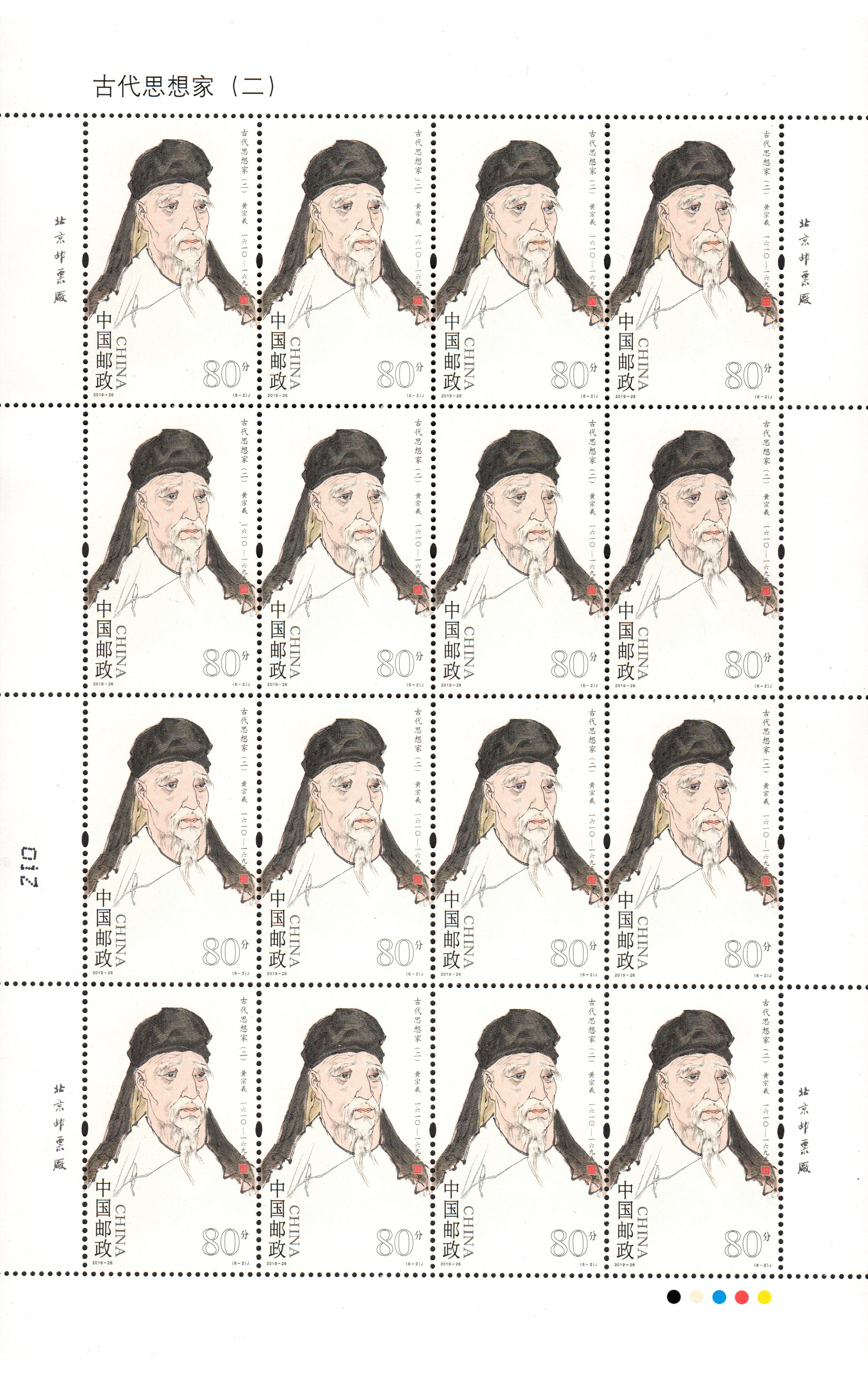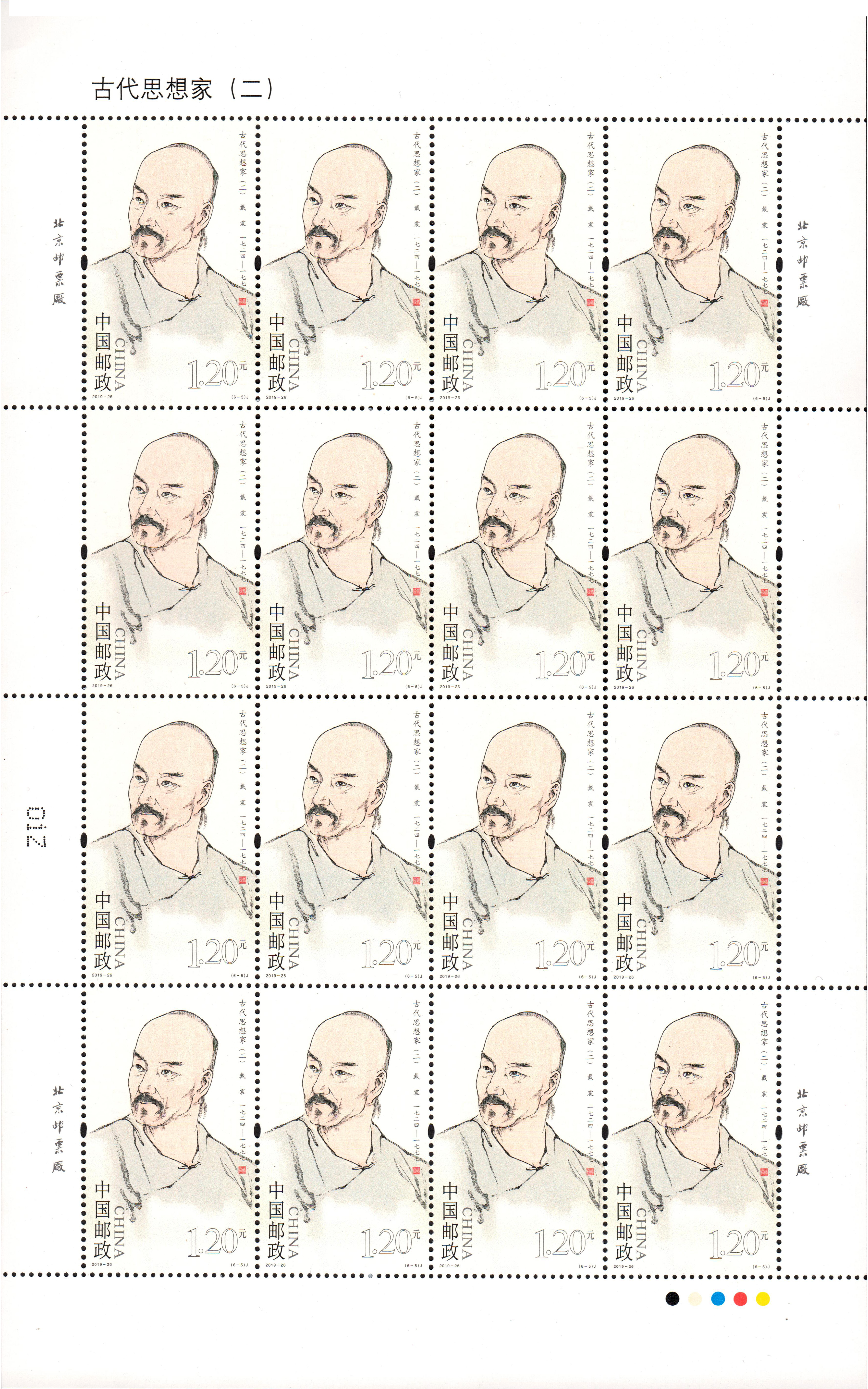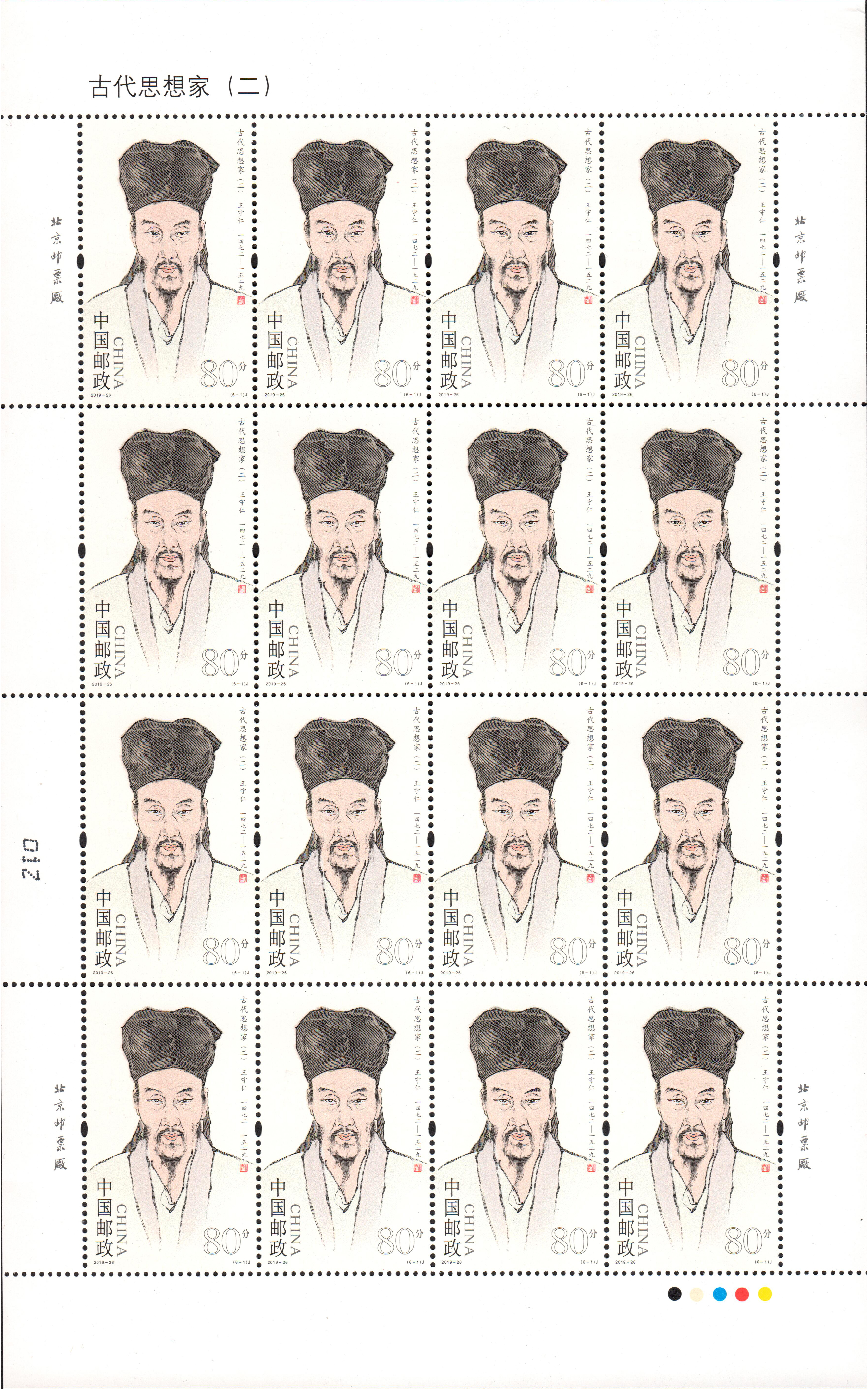 中国邮政定于2019年10月7日发行《古代思想家(二)》纪念邮票1套6枚。详情如下: