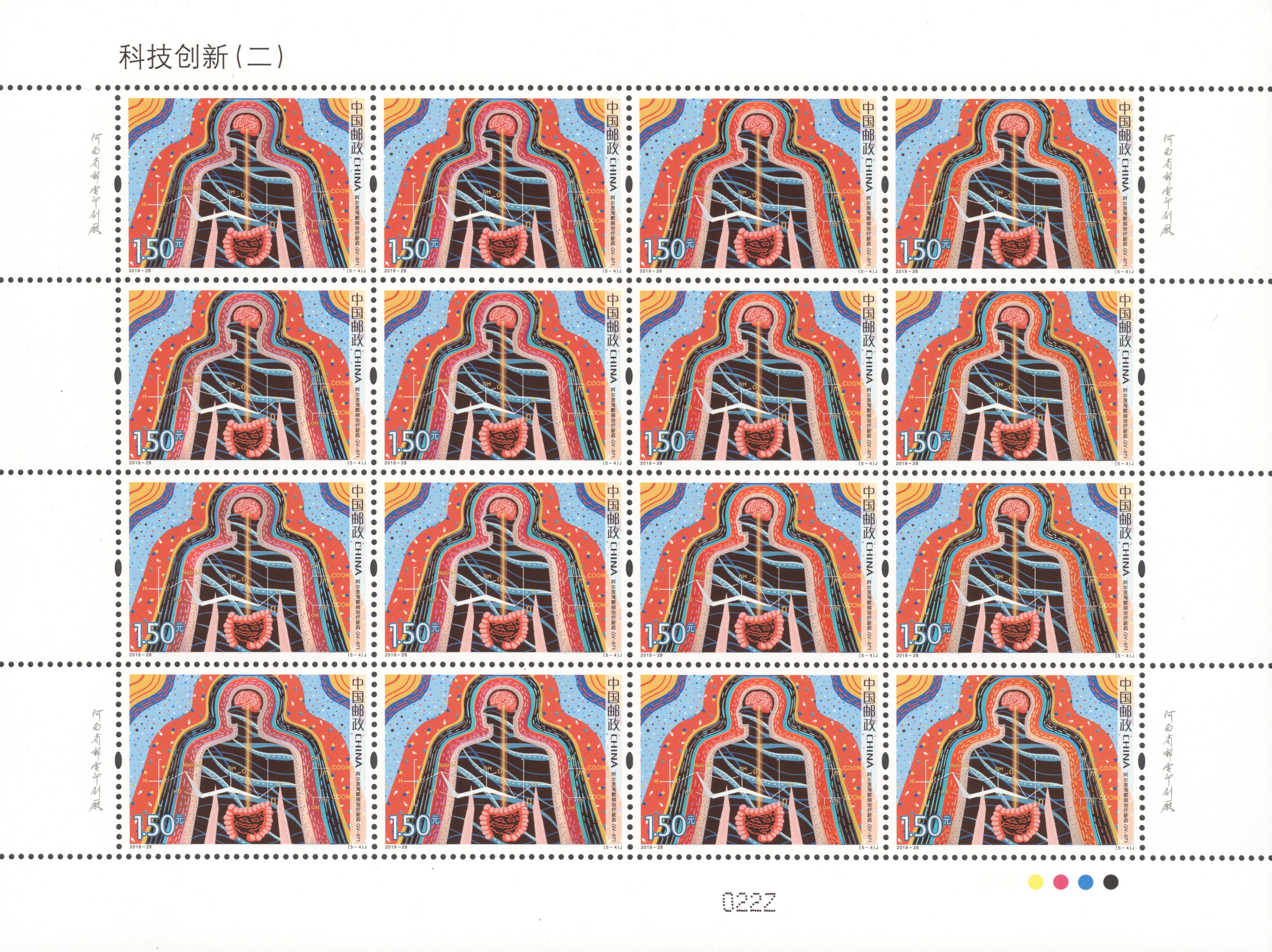 邮票印制采用彩色全息定位烫技术,技术含量高,防伪性能强,是众多印制方式中表现科技创新的不二选择。邮票首次在彩色全息定位烫图案上叠印印刷图案,是对加工精度的一次极大挑战,是中国邮票精益求精的又一力作。