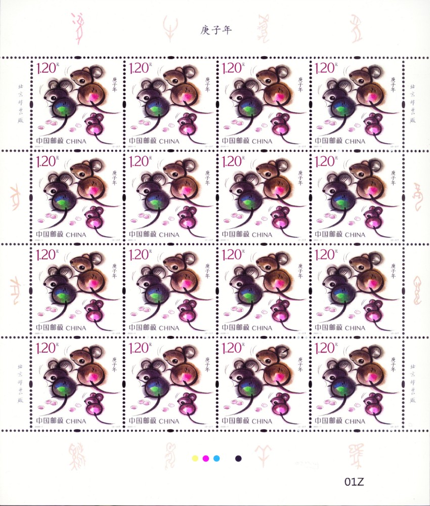注:同时发行《庚子年》邮票版式三(整张枚数:2套4枚;整张规格:120×160毫米;对联作者:常江),用于赠送给预订2020年全年纪特邮票的预订户。