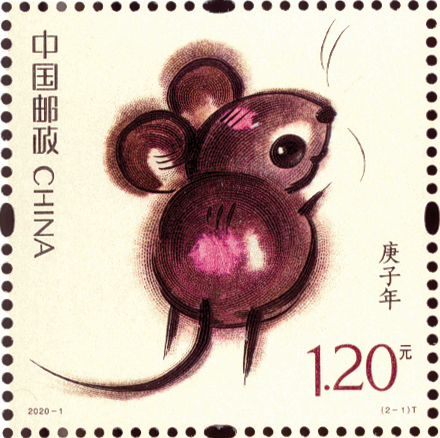 中国邮政定于2020年1月5日发行《庚子年》特种邮票1套2枚,图案内容分别为:子鼠开天、鼠兆丰年,全套邮票面值为2.40元。