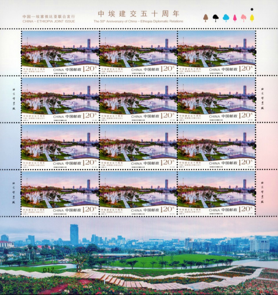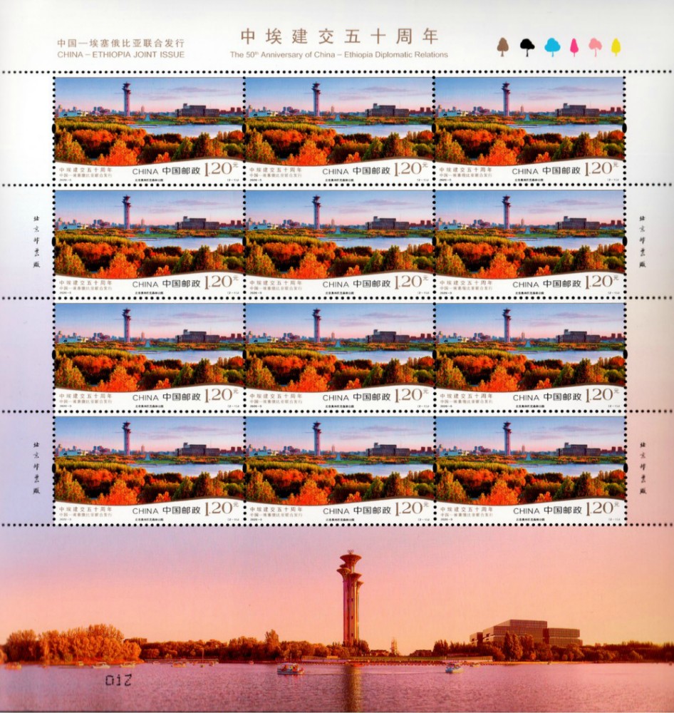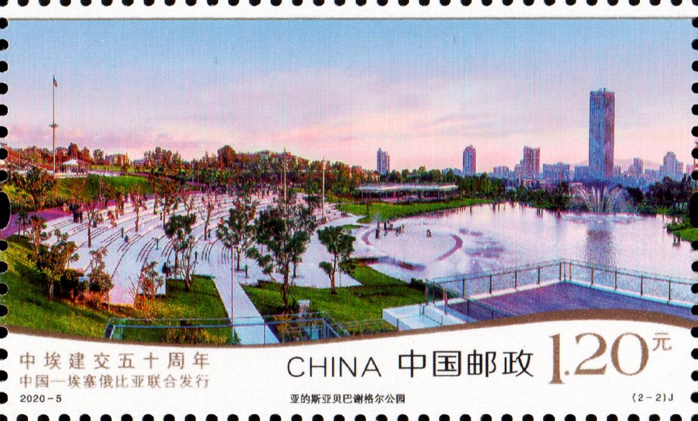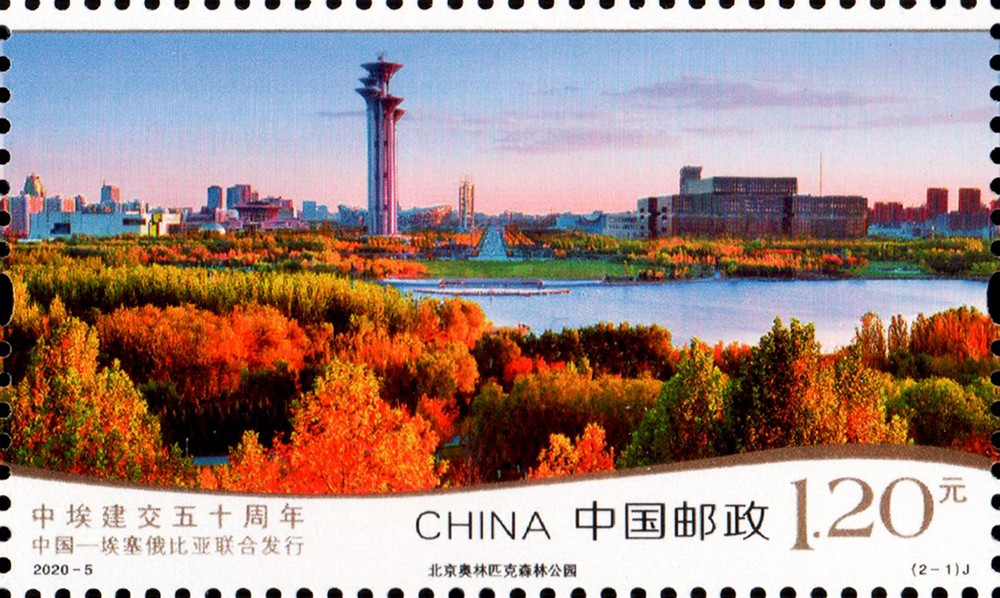 为纪念中华人民共和国与埃塞俄比亚联邦民主共和国建交50周年,中国邮政定于2020年11月24日发行《中埃建交五十周年》纪念邮票一套2枚(与埃塞俄比亚联合发行)。图案名称分别为:北京奥林匹克森林公园、亚的斯亚贝巴谢格尔公园,全套邮票面值为2.40元,计划发行数量为720万套。