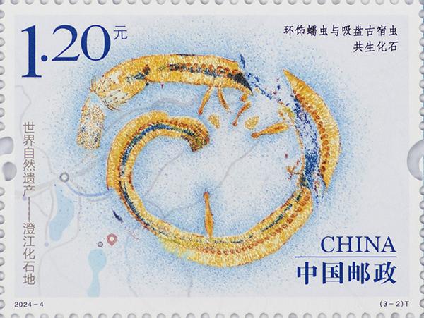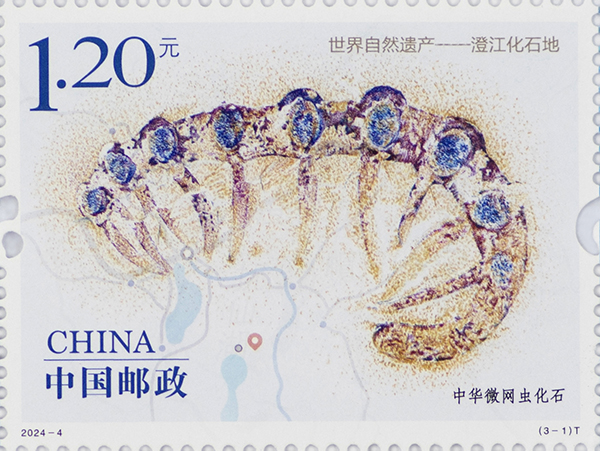 中国邮政定于2024年4月18日发行《世界自然遗产——澄江化石地》特种邮票1套3枚,邮票图案名称为中华微网虫化石、环饰蠕虫与吸盘古宿虫共生化石、延长抚仙湖虫化石,全套邮票面值3.60元。邮票计划发行数量为588万套。